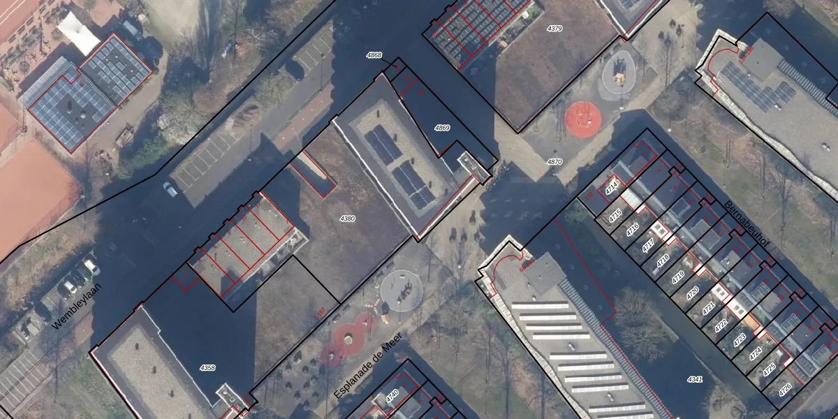 Het perceel waarop Esplanade de Meer 103 staat heeft een oppervlakte van 1885 m². Dit is een zeer groot perceel. De perceeloppervlakte wordt geregistreerd door het Kadaster. Gedetailleerde informatie over de maten van dit perceel kunt u vinden in het rapport Kadastrale kaart met maatvoering van Esplanade de Meer 103.