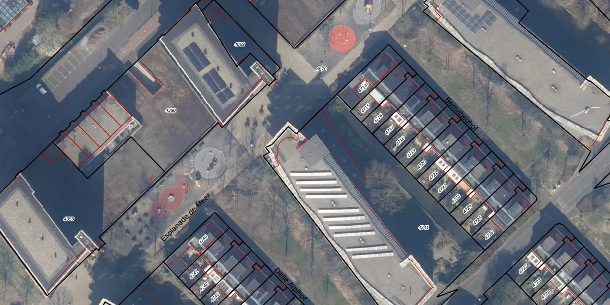 Het perceel waarop Esplanade de Meer 104 staat heeft een oppervlakte van 2556 m². Dit is een zeer groot perceel. De perceeloppervlakte wordt geregistreerd door het Kadaster. Gedetailleerde informatie over de maten van dit perceel kunt u vinden in het rapport Kadastrale kaart met maatvoering van Esplanade de Meer 104.
