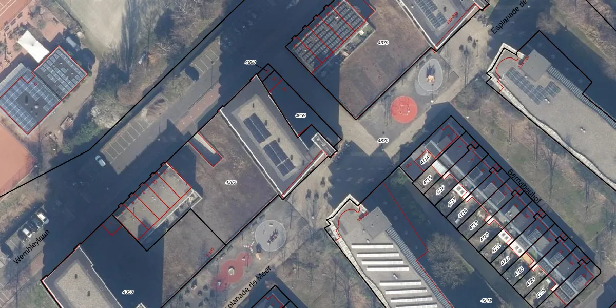 Het perceel waarop Esplanade de Meer 169 staat heeft een oppervlakte van 1885 m². Dit is een zeer groot perceel. De perceeloppervlakte wordt geregistreerd door het Kadaster. Gedetailleerde informatie over de maten van dit perceel kunt u vinden in het rapport Kadastrale kaart met maatvoering van Esplanade de Meer 169.