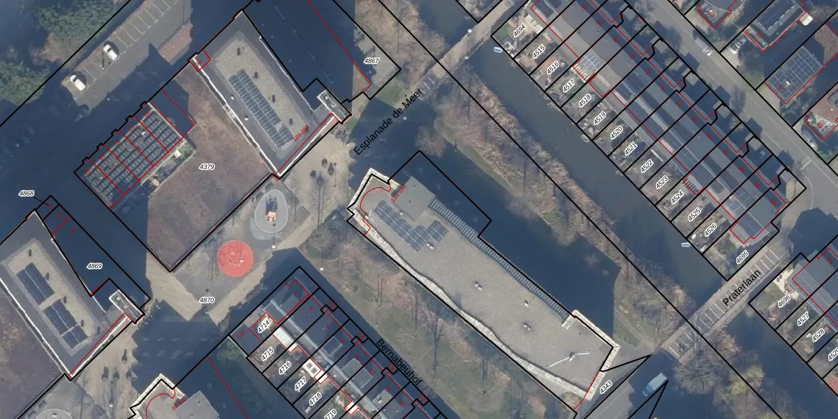 Het perceel waarop Esplanade de Meer 186 staat heeft een oppervlakte van 1448 m². Dit is een zeer groot perceel. De perceeloppervlakte wordt geregistreerd door het Kadaster. Gedetailleerde informatie over de maten van dit perceel kunt u vinden in het rapport Kadastrale kaart met maatvoering van Esplanade de Meer 186.