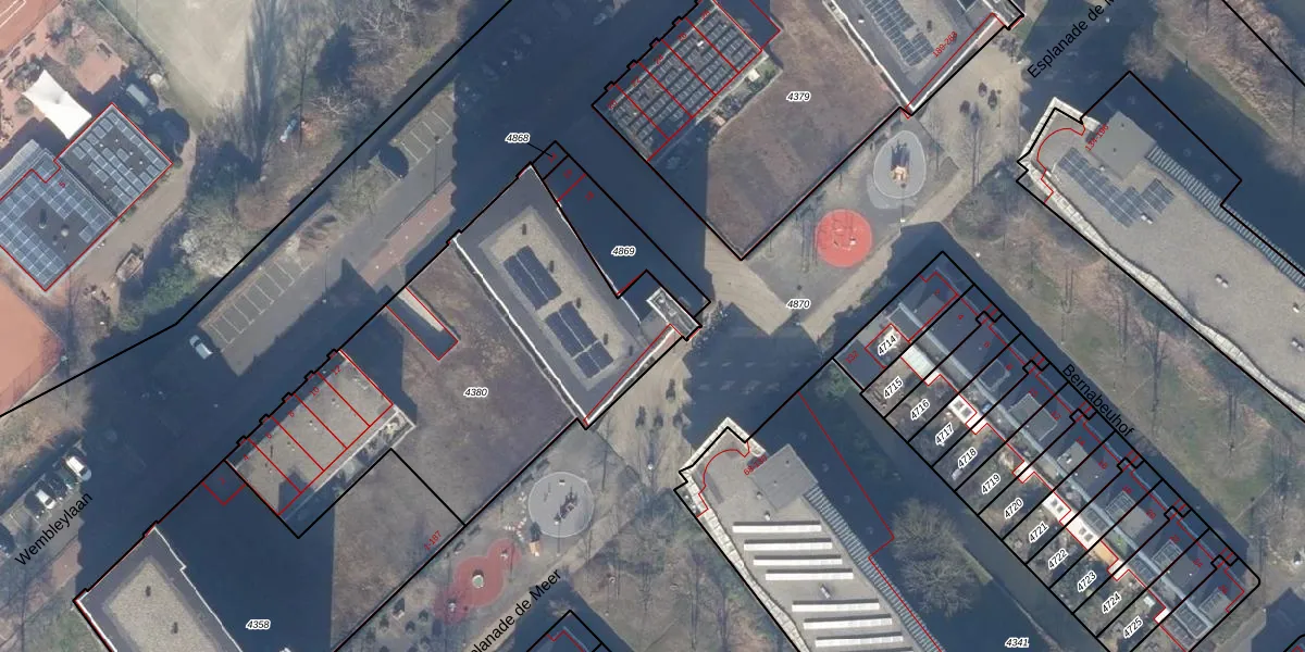 Het perceel waarop Esplanade de Meer 187 staat heeft een oppervlakte van 1885 m². Dit is een zeer groot perceel. De perceeloppervlakte wordt geregistreerd door het Kadaster. Gedetailleerde informatie over de maten van dit perceel kunt u vinden in het rapport Kadastrale kaart met maatvoering van Esplanade de Meer 187.