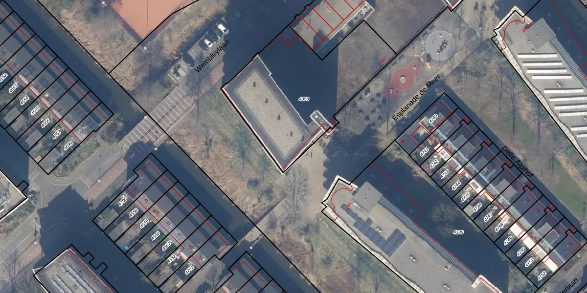 Het perceel waarop Esplanade de Meer 27 staat heeft een oppervlakte van 1496 m². Dit is een zeer groot perceel. De perceeloppervlakte wordt geregistreerd door het Kadaster. Gedetailleerde informatie over de maten van dit perceel kunt u vinden in het rapport Kadastrale kaart met maatvoering van Esplanade de Meer 27.