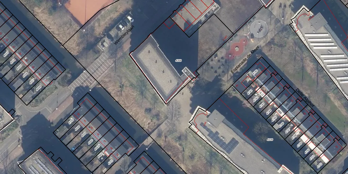 Het perceel waarop Esplanade de Meer 37 staat heeft een oppervlakte van 1496 m². Dit is een zeer groot perceel. De perceeloppervlakte wordt geregistreerd door het Kadaster. Gedetailleerde informatie over de maten van dit perceel kunt u vinden in het rapport Kadastrale kaart met maatvoering van Esplanade de Meer 37.