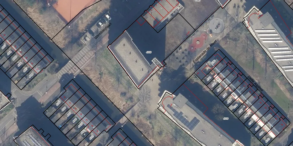 Het perceel waarop Esplanade de Meer 47 staat heeft een oppervlakte van 1496 m². Dit is een zeer groot perceel. De perceeloppervlakte wordt geregistreerd door het Kadaster. Gedetailleerde informatie over de maten van dit perceel kunt u vinden in het rapport Kadastrale kaart met maatvoering van Esplanade de Meer 47.