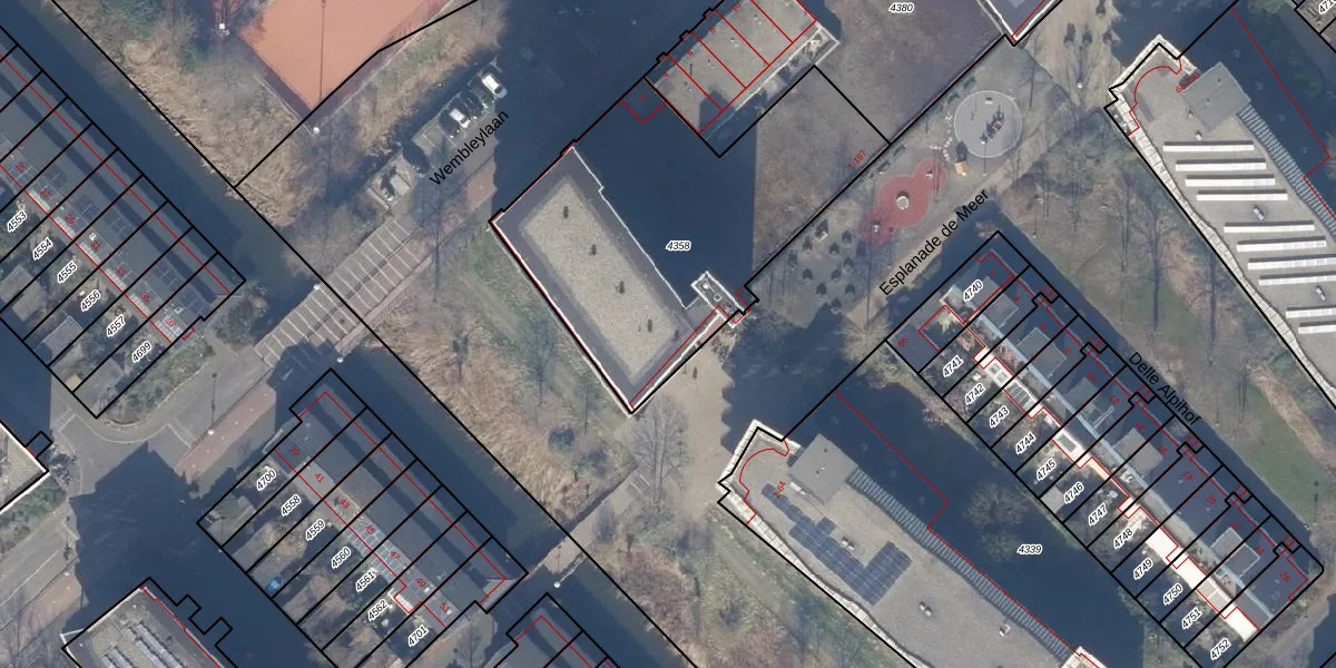 Het perceel waarop Esplanade de Meer 53 staat heeft een oppervlakte van 1496 m². Dit is een zeer groot perceel. De perceeloppervlakte wordt geregistreerd door het Kadaster. Gedetailleerde informatie over de maten van dit perceel kunt u vinden in het rapport Kadastrale kaart met maatvoering van Esplanade de Meer 53.