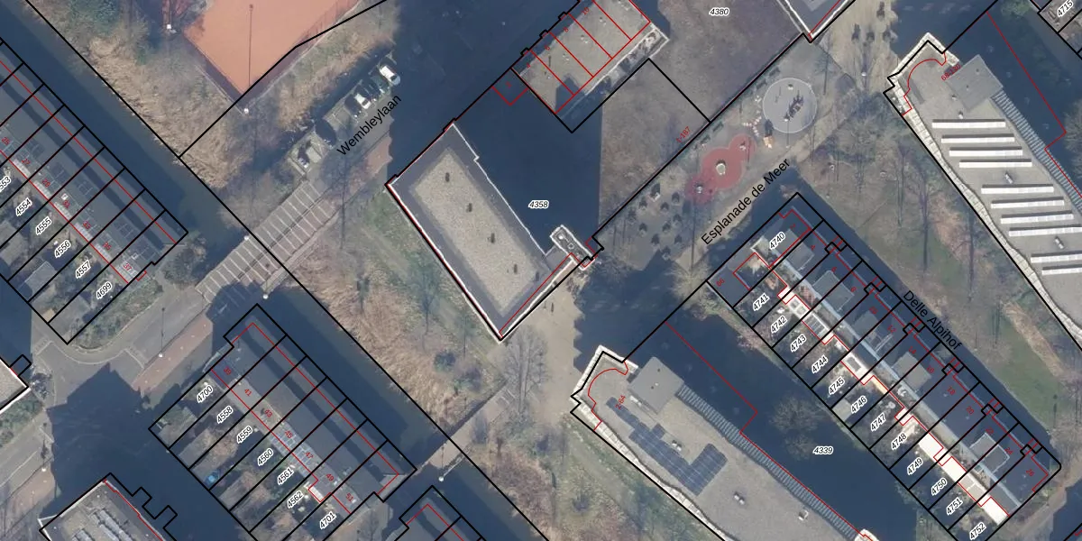 Het perceel waarop Esplanade de Meer 67 staat heeft een oppervlakte van 1496 m². Dit is een zeer groot perceel. De perceeloppervlakte wordt geregistreerd door het Kadaster. Gedetailleerde informatie over de maten van dit perceel kunt u vinden in het rapport Kadastrale kaart met maatvoering van Esplanade de Meer 67.