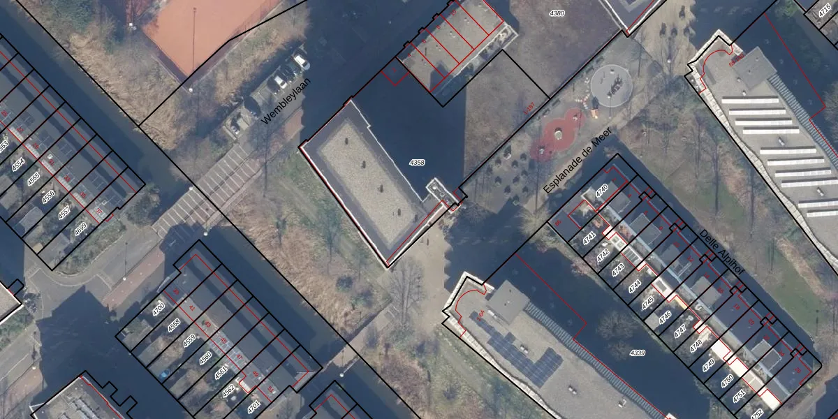 Het perceel waarop Esplanade de Meer 77 staat heeft een oppervlakte van 1496 m². Dit is een zeer groot perceel. De perceeloppervlakte wordt geregistreerd door het Kadaster. Gedetailleerde informatie over de maten van dit perceel kunt u vinden in het rapport Kadastrale kaart met maatvoering van Esplanade de Meer 77.