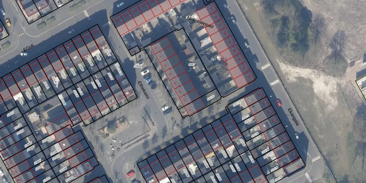 Het perceel waarop Ethekwini 15 staat heeft een oppervlakte van 932 m². Dit is een groot perceel. De perceeloppervlakte wordt geregistreerd door het Kadaster. Gedetailleerde informatie over de maten van dit perceel kunt u vinden in het rapport Kadastrale kaart met maatvoering van Ethekwini 15.