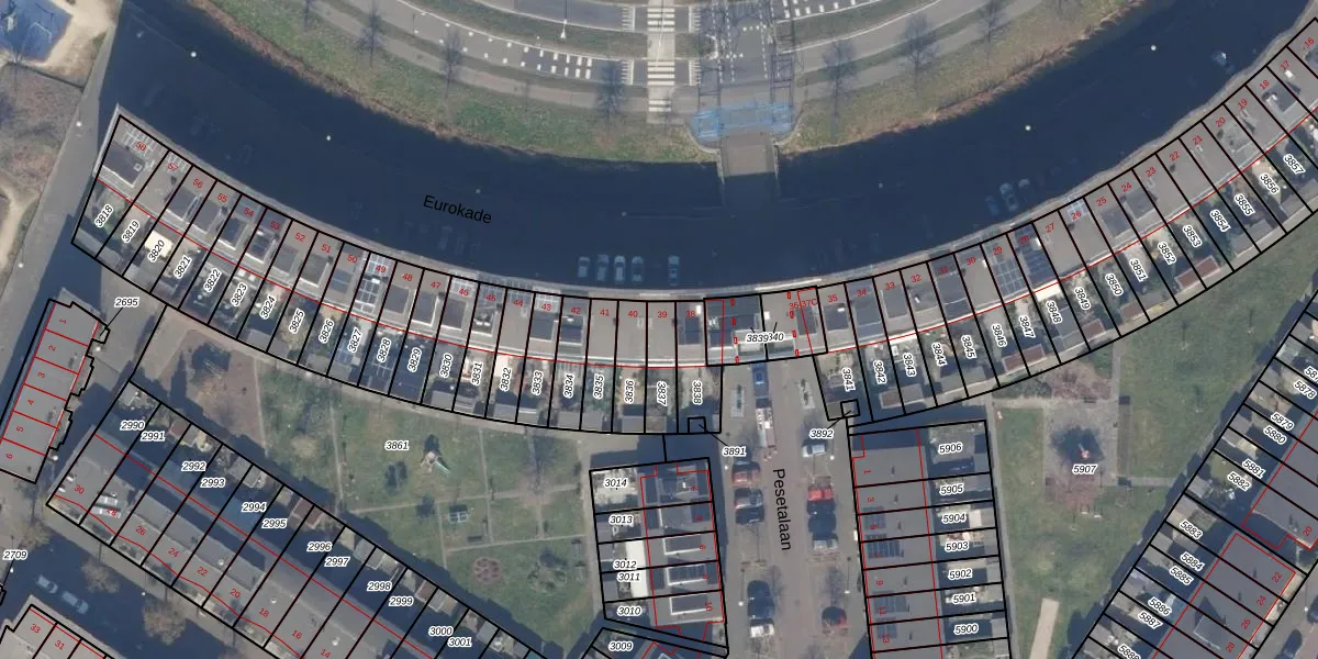 Het perceel waarop Eurokade 39 staat heeft een oppervlakte van 93 m². Dit is een klein perceel. De perceeloppervlakte wordt geregistreerd door het Kadaster. Gedetailleerde informatie over de maten van dit perceel kunt u vinden in het rapport Kadastrale kaart met maatvoering van Eurokade 39.