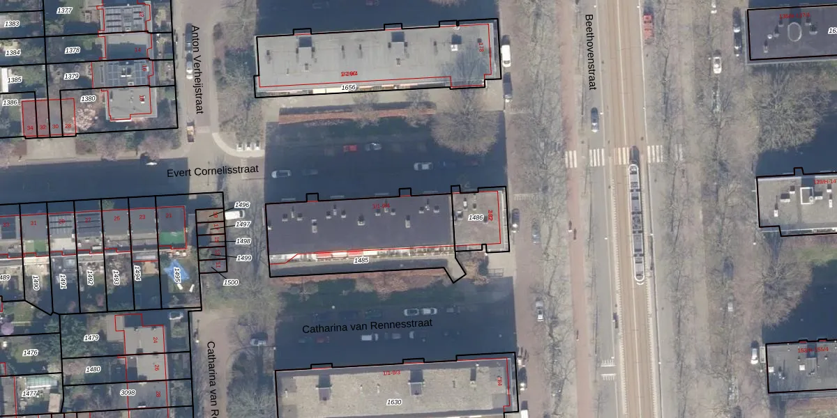 Evert Cornelisstraat 3-2 is gelegen op kadastraal perceel ASD23AB1485. Deze kadastrale aanduiding is uniek en wordt gebruikt door het Kadaster om eigendomsrechten en andere zakelijke rechten vast te leggen. Het perceel maakt onderdeel uit van de kadastrale gemeente Amsterdam.