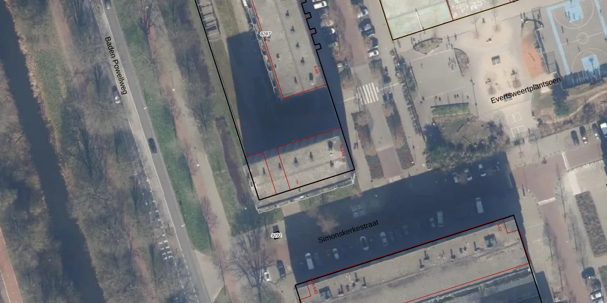 Het perceel waarop Evertsweertplantsoen 102 staat heeft een oppervlakte van 2445 m². Dit is een zeer groot perceel. De perceeloppervlakte wordt geregistreerd door het Kadaster. Gedetailleerde informatie over de maten van dit perceel kunt u vinden in het rapport Kadastrale kaart met maatvoering van Evertsweertplantsoen 102.