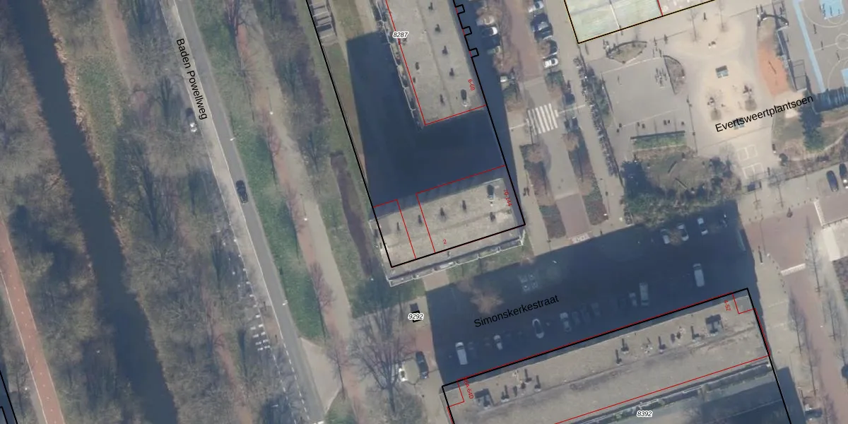 Het perceel waarop Evertsweertplantsoen 124 staat heeft een oppervlakte van 2445 m². Dit is een zeer groot perceel. De perceeloppervlakte wordt geregistreerd door het Kadaster. Gedetailleerde informatie over de maten van dit perceel kunt u vinden in het rapport Kadastrale kaart met maatvoering van Evertsweertplantsoen 124.