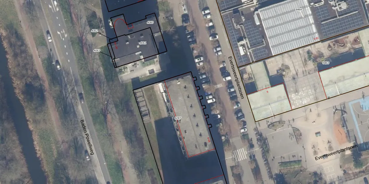 Het perceel waarop Evertsweertplantsoen 14 staat heeft een oppervlakte van 2445 m². Dit is een zeer groot perceel. De perceeloppervlakte wordt geregistreerd door het Kadaster. Gedetailleerde informatie over de maten van dit perceel kunt u vinden in het rapport Kadastrale kaart met maatvoering van Evertsweertplantsoen 14.