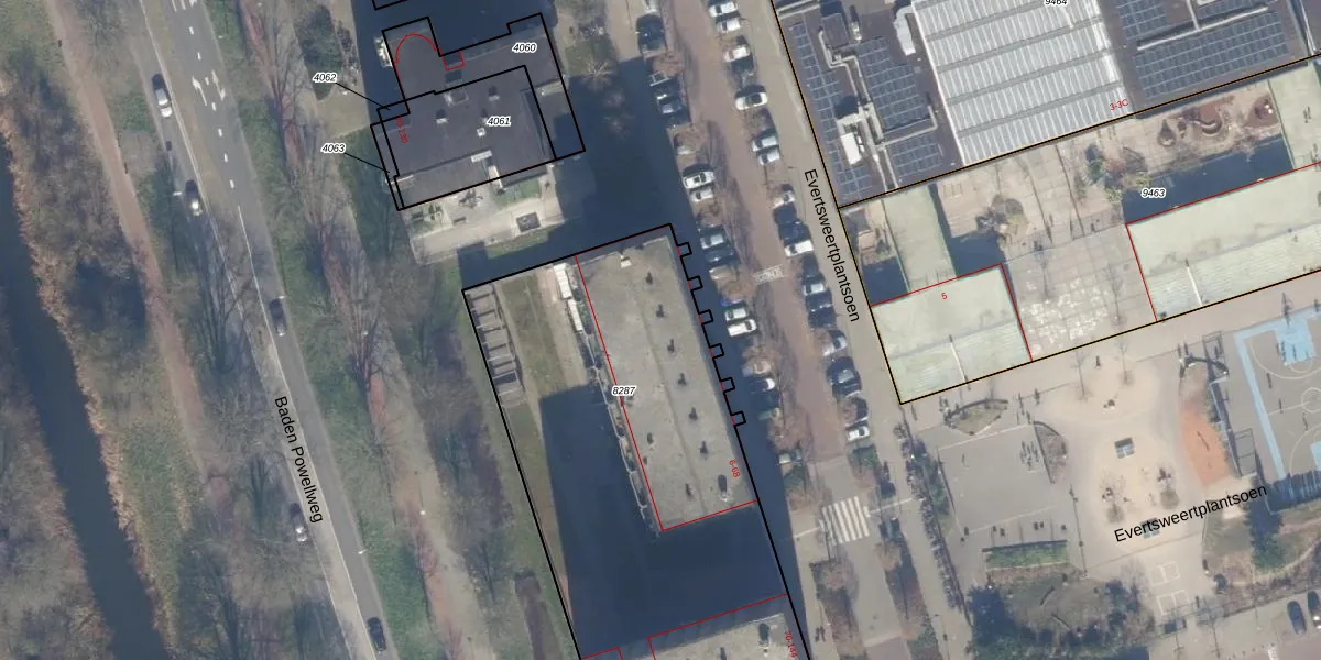 Het perceel waarop Evertsweertplantsoen 24 staat heeft een oppervlakte van 2445 m². Dit is een zeer groot perceel. De perceeloppervlakte wordt geregistreerd door het Kadaster. Gedetailleerde informatie over de maten van dit perceel kunt u vinden in het rapport Kadastrale kaart met maatvoering van Evertsweertplantsoen 24.