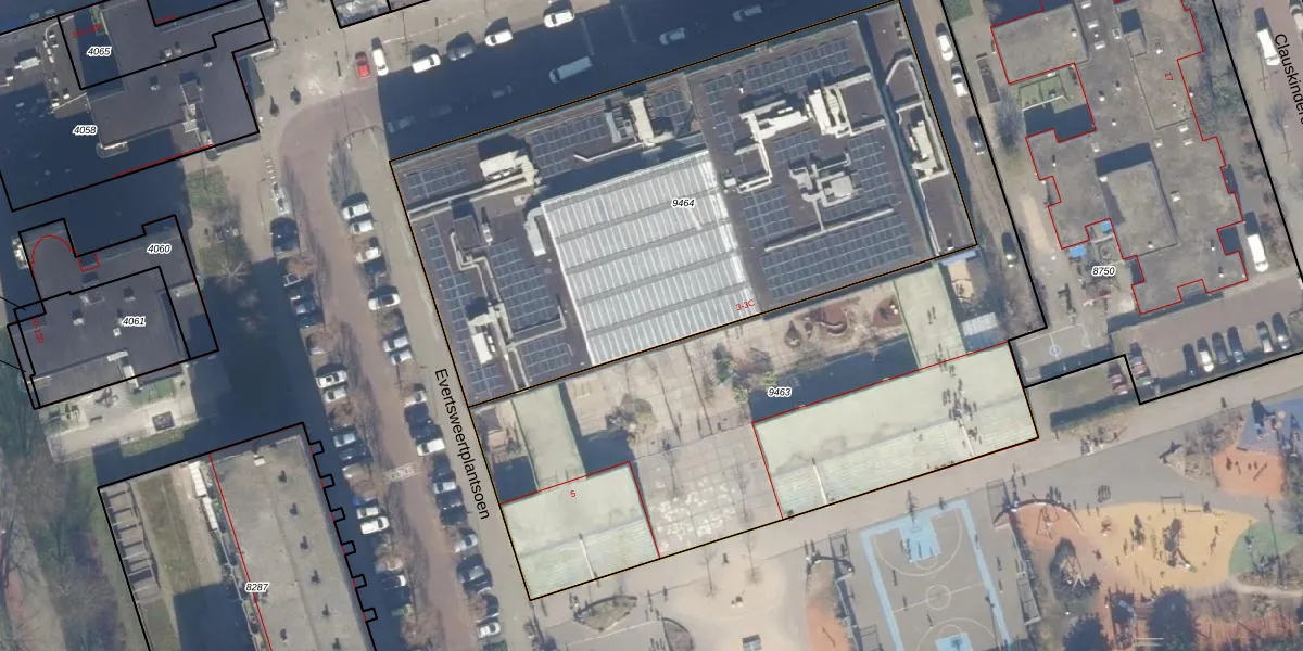 Het perceel waarop Evertsweertplantsoen 3 staat heeft een oppervlakte van 3262 m². Dit is een zeer groot perceel. De perceeloppervlakte wordt geregistreerd door het Kadaster. Gedetailleerde informatie over de maten van dit perceel kunt u vinden in het rapport Kadastrale kaart met maatvoering van Evertsweertplantsoen 3.