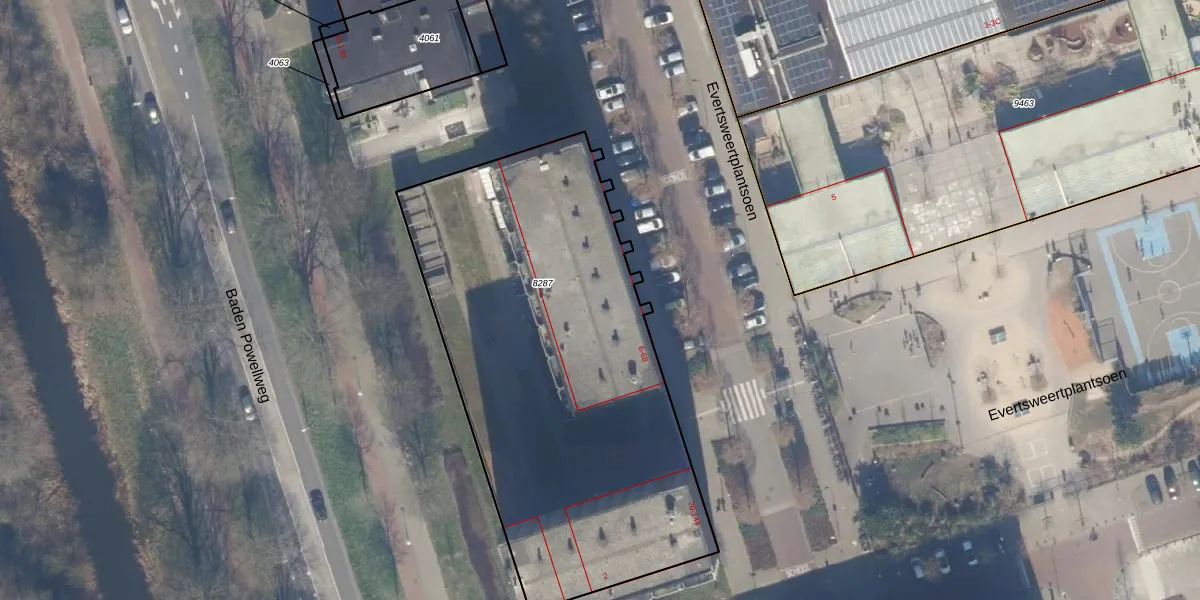 Het perceel waarop Evertsweertplantsoen 44 staat heeft een oppervlakte van 2445 m². Dit is een zeer groot perceel. De perceeloppervlakte wordt geregistreerd door het Kadaster. Gedetailleerde informatie over de maten van dit perceel kunt u vinden in het rapport Kadastrale kaart met maatvoering van Evertsweertplantsoen 44.