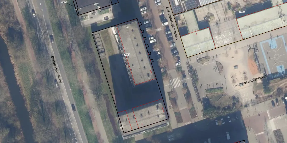 Het perceel waarop Evertsweertplantsoen 60 staat heeft een oppervlakte van 2445 m². Dit is een zeer groot perceel. De perceeloppervlakte wordt geregistreerd door het Kadaster. Gedetailleerde informatie over de maten van dit perceel kunt u vinden in het rapport Kadastrale kaart met maatvoering van Evertsweertplantsoen 60.