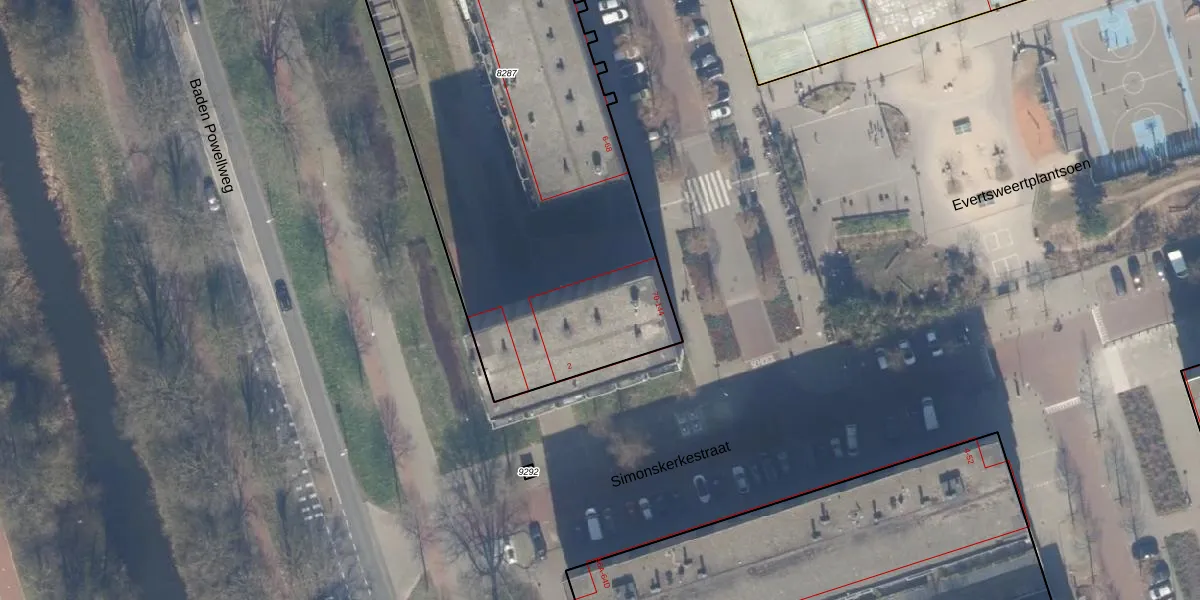 Het perceel waarop Evertsweertplantsoen 92 staat heeft een oppervlakte van 2445 m². Dit is een zeer groot perceel. De perceeloppervlakte wordt geregistreerd door het Kadaster. Gedetailleerde informatie over de maten van dit perceel kunt u vinden in het rapport Kadastrale kaart met maatvoering van Evertsweertplantsoen 92.