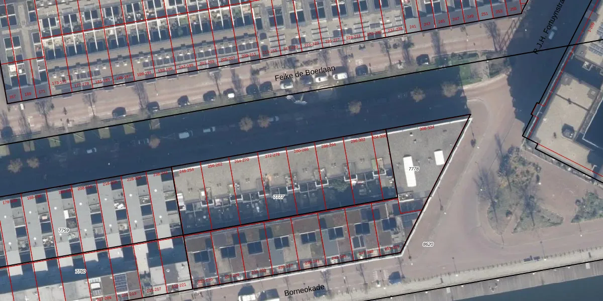 Feike de Boerlaan 286 is gelegen op kadastraal perceel ASD02A7777. Deze kadastrale aanduiding is uniek en wordt gebruikt door het Kadaster om eigendomsrechten en andere zakelijke rechten vast te leggen. Het perceel maakt onderdeel uit van de kadastrale gemeente Amsterdam.