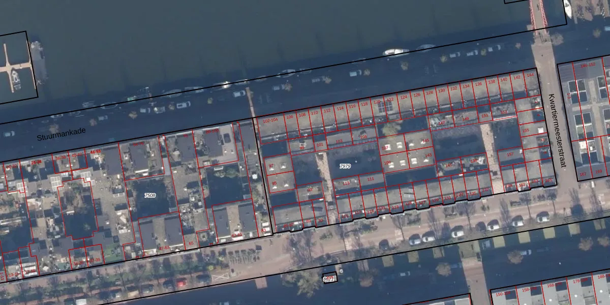 Het adres is gelegen op perceel 7979 in de sectie A en de kadastrale gemeente Amsterdam. De kadastrale aanduiding is aldus ASD02-A-7979. De oppervlakte van het perceel is 3661 m². Dat is groter dan gemiddeld in Amsterdam, waar de gemiddelde perceeloppervlakte op 2763,93 m² ligt. De grootste perceeloppervlakte in de kadastrale gemeente is 14,3 ha. De kleinste oppervlakte bedraagt 0 m². Op het perceel zijn 68 adressen aanwezig. De huidige grenzen van het perceel zijn digitaal in de Basisregistratie Kadaster (BRK) geregistreerd op 09-02-2006.