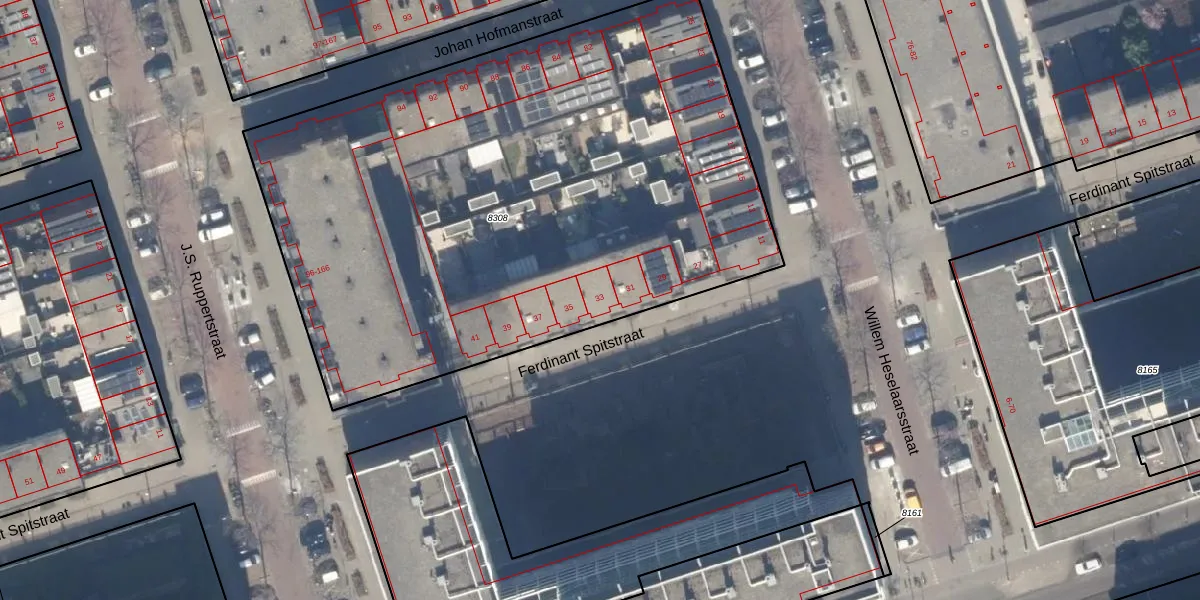 Het perceel waarop Ferdinant Spitstraat 33 staat heeft een oppervlakte van 3870 m². Dit is een zeer groot perceel. De perceeloppervlakte wordt geregistreerd door het Kadaster. Gedetailleerde informatie over de maten van dit perceel kunt u vinden in het rapport Kadastrale kaart met maatvoering van Ferdinant Spitstraat 33.