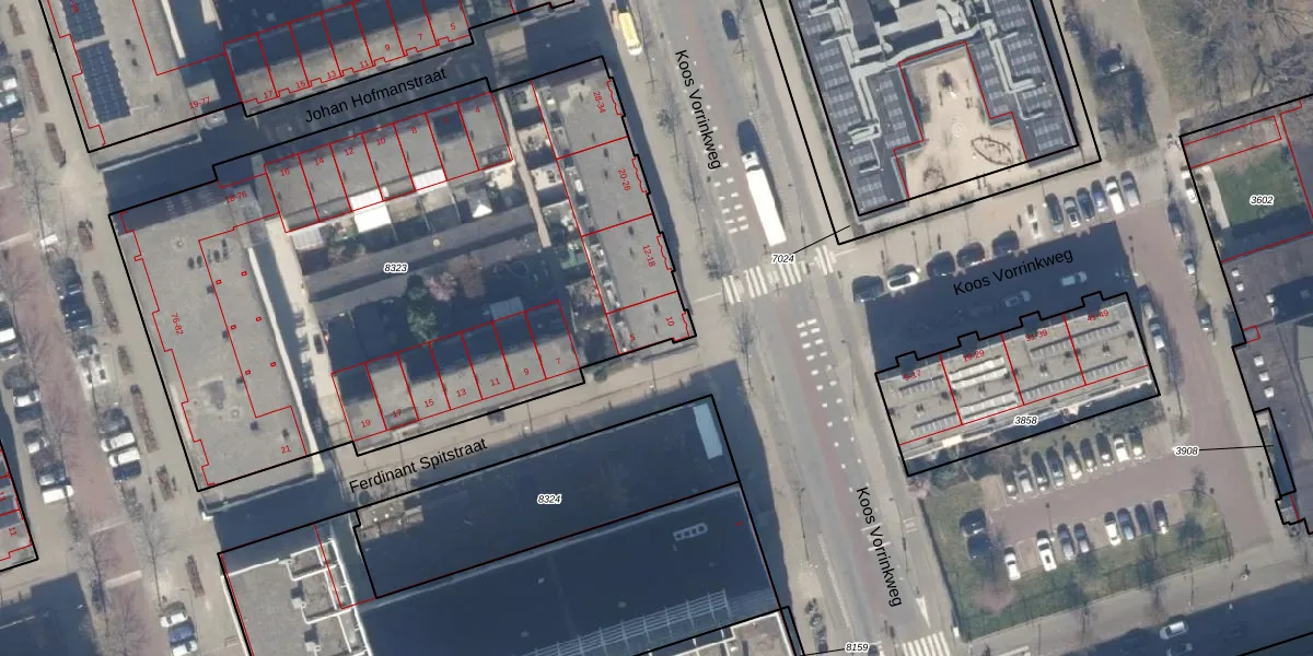 Het perceel waarop Ferdinant Spitstraat 5 staat heeft een oppervlakte van 3693 m². Dit is een zeer groot perceel. De perceeloppervlakte wordt geregistreerd door het Kadaster. Gedetailleerde informatie over de maten van dit perceel kunt u vinden in het rapport Kadastrale kaart met maatvoering van Ferdinant Spitstraat 5.