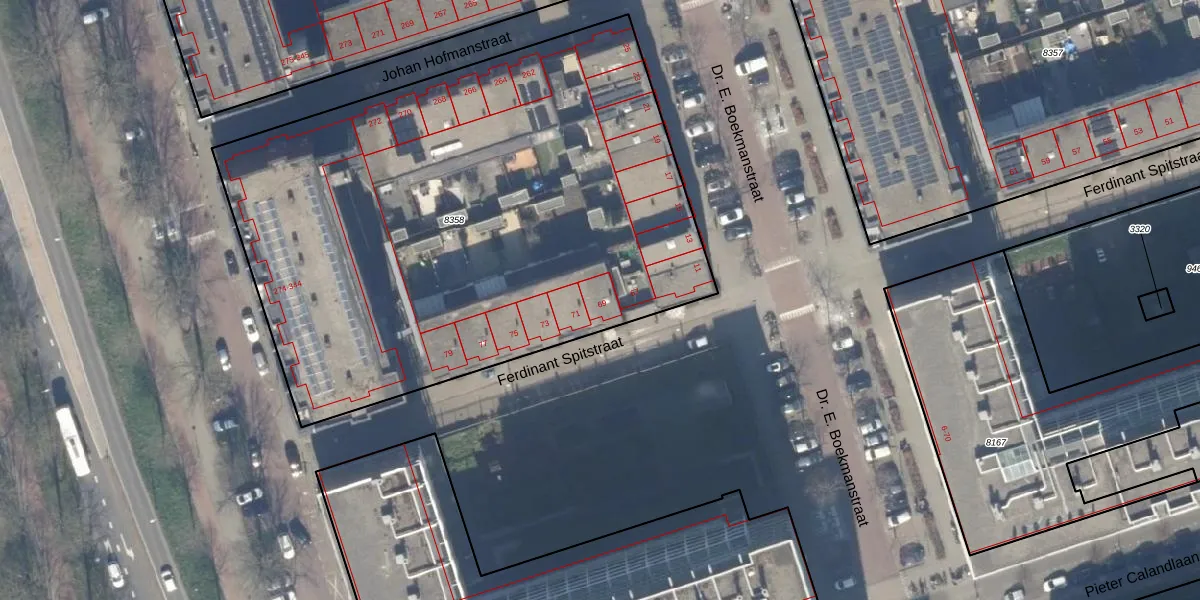 Het perceel waarop Ferdinant Spitstraat 69 staat heeft een oppervlakte van 3564 m². Dit is een zeer groot perceel. De perceeloppervlakte wordt geregistreerd door het Kadaster. Gedetailleerde informatie over de maten van dit perceel kunt u vinden in het rapport Kadastrale kaart met maatvoering van Ferdinant Spitstraat 69.
