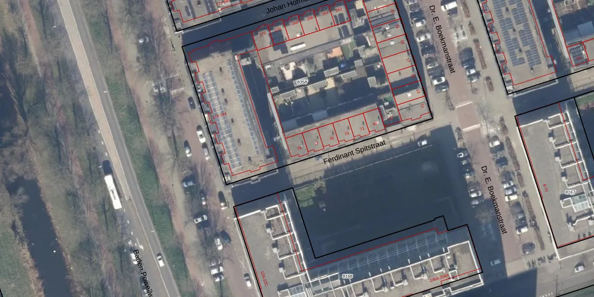 Het perceel waarop Ferdinant Spitstraat 79 staat heeft een oppervlakte van 3564 m². Dit is een zeer groot perceel. De perceeloppervlakte wordt geregistreerd door het Kadaster. Gedetailleerde informatie over de maten van dit perceel kunt u vinden in het rapport Kadastrale kaart met maatvoering van Ferdinant Spitstraat 79.