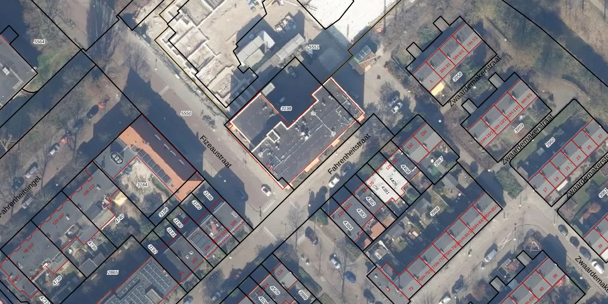 Het perceel waarop Fizeaustraat 11-G staat heeft een oppervlakte van 1004 m². Dit is een zeer groot perceel. De perceeloppervlakte wordt geregistreerd door het Kadaster. Gedetailleerde informatie over de maten van dit perceel kunt u vinden in het rapport Kadastrale kaart met maatvoering van Fizeaustraat 11-G.