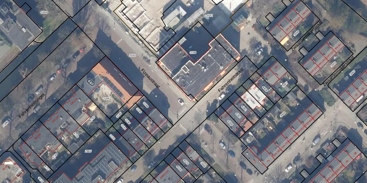 Het perceel waarop Fizeaustraat 3-E staat heeft een oppervlakte van 1593 m². Dit is een zeer groot perceel. De perceeloppervlakte wordt geregistreerd door het Kadaster. Gedetailleerde informatie over de maten van dit perceel kunt u vinden in het rapport Kadastrale kaart met maatvoering van Fizeaustraat 3-E.