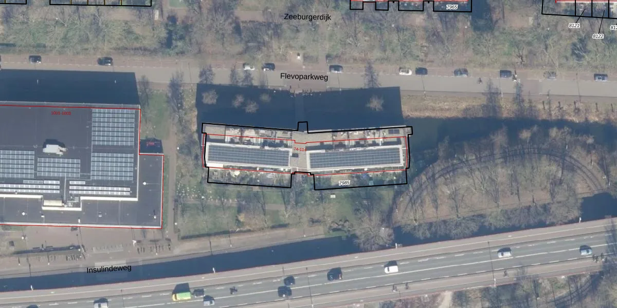 Flevoparkweg 106 is gelegen op kadastraal perceel ASD19W7985. Deze kadastrale aanduiding is uniek en wordt gebruikt door het Kadaster om eigendomsrechten en andere zakelijke rechten vast te leggen. Het perceel maakt onderdeel uit van de kadastrale gemeente Amsterdam.