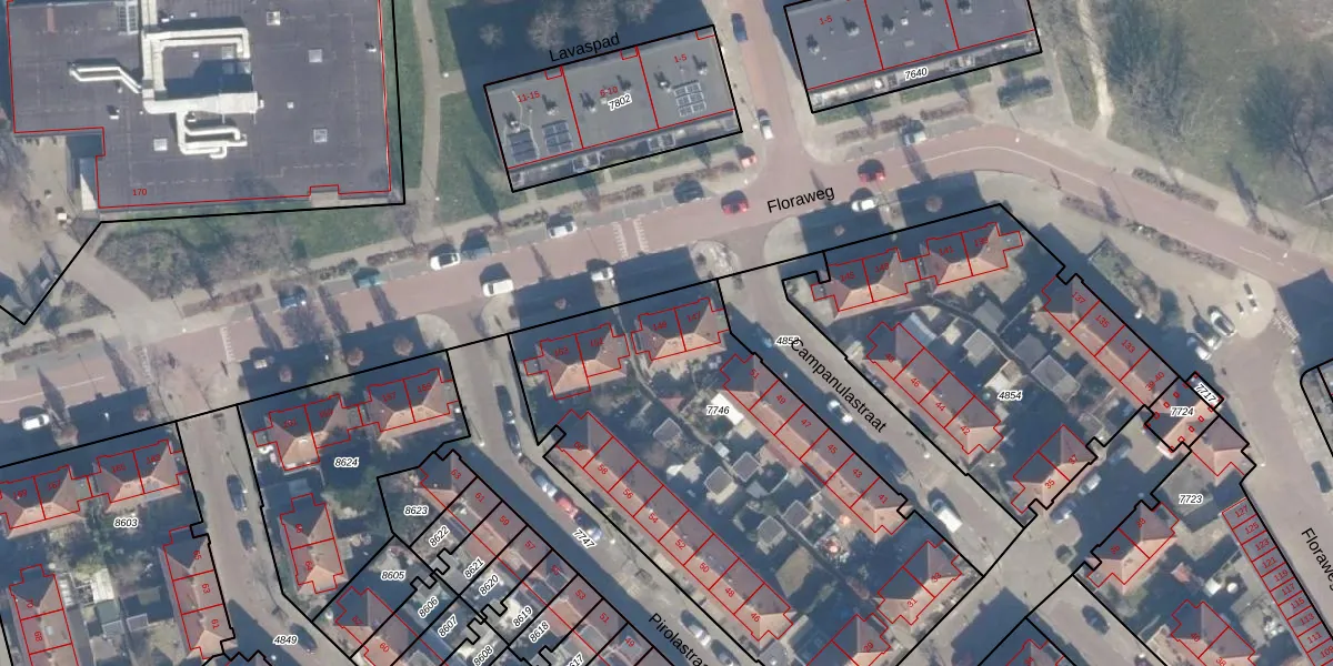 Het perceel waarop Floraweg 149 staat heeft een oppervlakte van 2270 m². Dit is een zeer groot perceel. De perceeloppervlakte wordt geregistreerd door het Kadaster. Gedetailleerde informatie over de maten van dit perceel kunt u vinden in het rapport Kadastrale kaart met maatvoering van Floraweg 149.