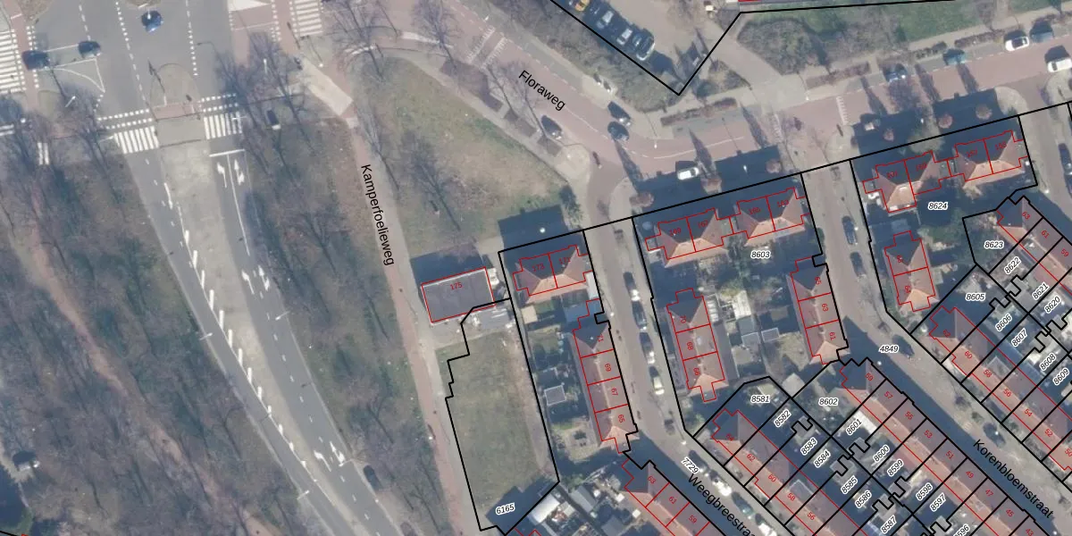 Floraweg 173 is gelegen op kadastraal perceel ASD07K6166. Deze kadastrale aanduiding is uniek en wordt gebruikt door het Kadaster om eigendomsrechten en andere zakelijke rechten vast te leggen. Het perceel maakt onderdeel uit van de kadastrale gemeente Amsterdam.