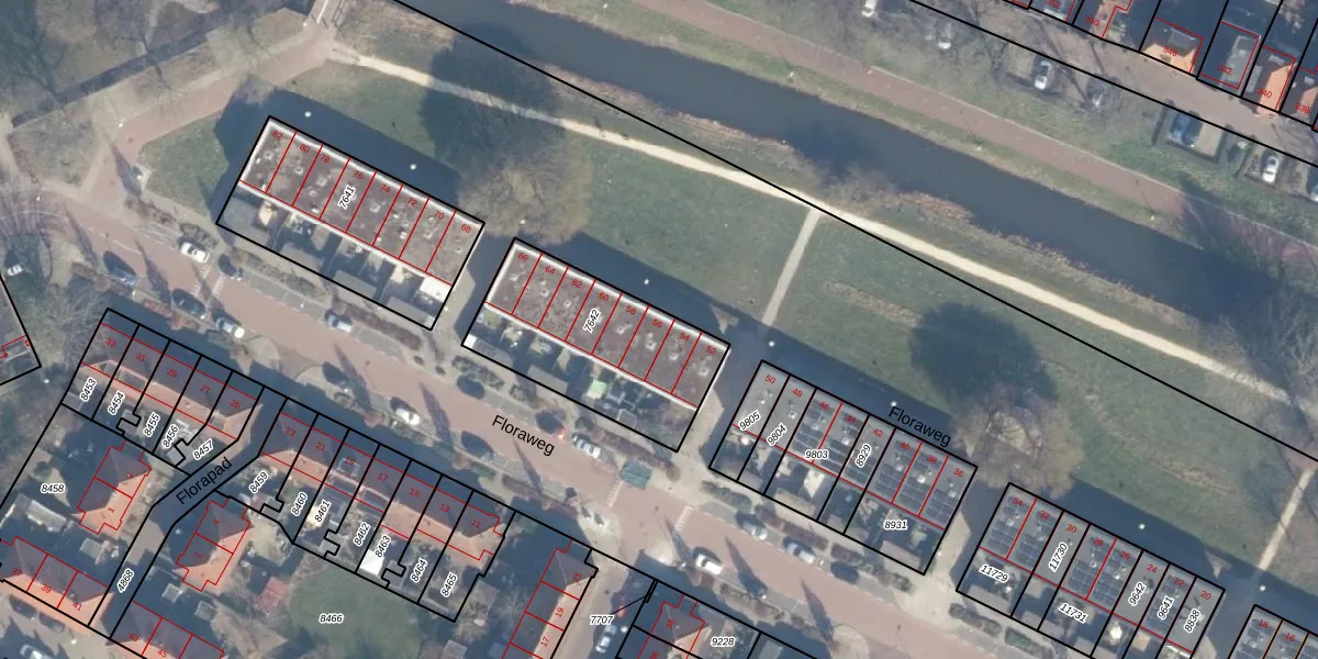 Het perceel waarop Floraweg 56 staat heeft een oppervlakte van 663 m². Dit is een groot perceel. De perceeloppervlakte wordt geregistreerd door het Kadaster. Gedetailleerde informatie over de maten van dit perceel kunt u vinden in het rapport Kadastrale kaart met maatvoering van Floraweg 56.