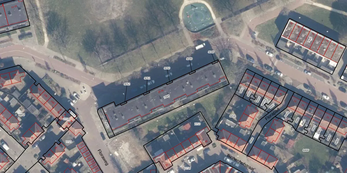 Het perceel waarop Floraweg 59 staat heeft een oppervlakte van 1119 m². Dit is een zeer groot perceel. De perceeloppervlakte wordt geregistreerd door het Kadaster. Gedetailleerde informatie over de maten van dit perceel kunt u vinden in het rapport Kadastrale kaart met maatvoering van Floraweg 59.