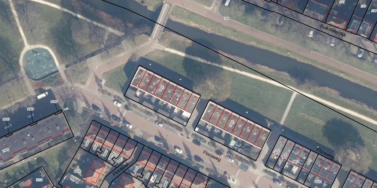 Floraweg 70 is gelegen op kadastraal perceel ASD07K7641. Deze kadastrale aanduiding is uniek en wordt gebruikt door het Kadaster om eigendomsrechten en andere zakelijke rechten vast te leggen. Het perceel maakt onderdeel uit van de kadastrale gemeente Amsterdam.