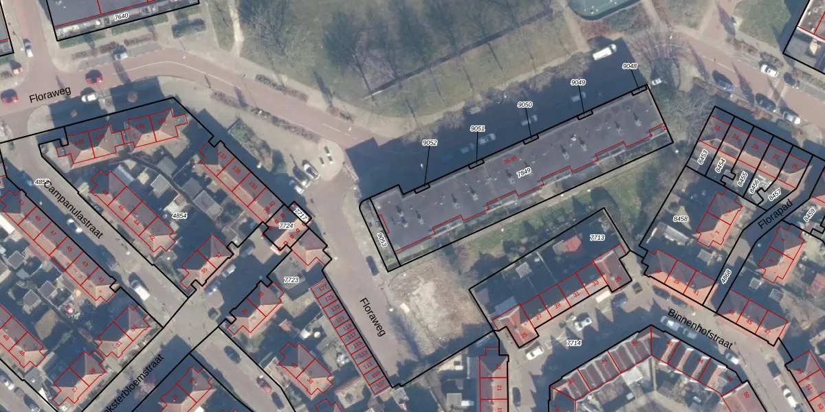 Het perceel waarop Floraweg 85 staat heeft een oppervlakte van 1119 m². Dit is een zeer groot perceel. De perceeloppervlakte wordt geregistreerd door het Kadaster. Gedetailleerde informatie over de maten van dit perceel kunt u vinden in het rapport Kadastrale kaart met maatvoering van Floraweg 85.
