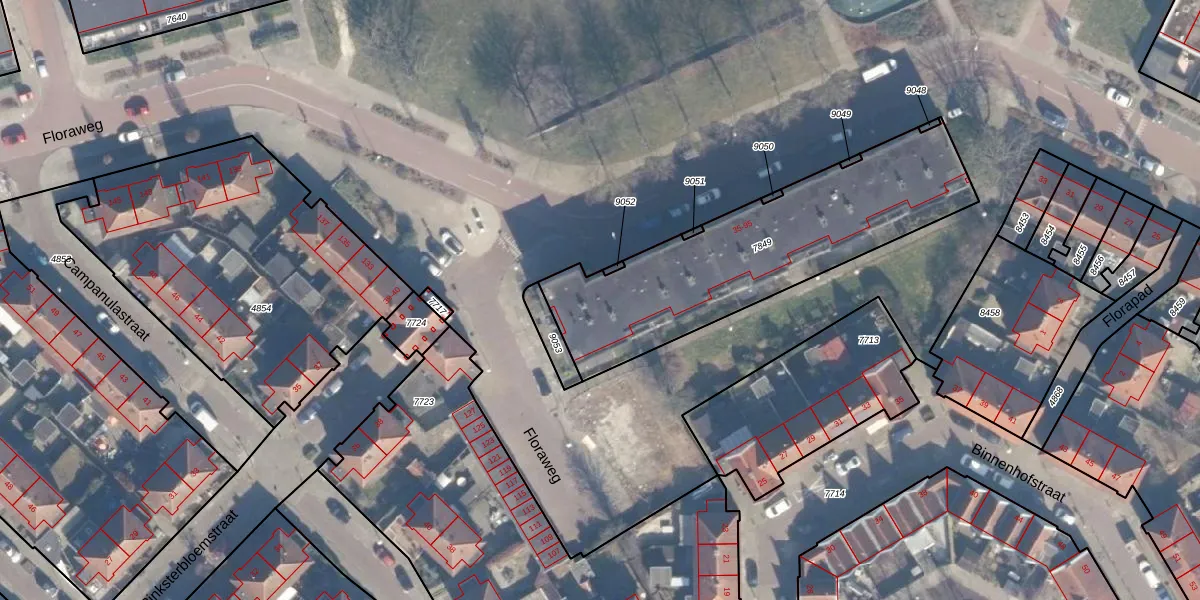 Het perceel waarop Floraweg 87 staat heeft een oppervlakte van 1119 m². Dit is een zeer groot perceel. De perceeloppervlakte wordt geregistreerd door het Kadaster. Gedetailleerde informatie over de maten van dit perceel kunt u vinden in het rapport Kadastrale kaart met maatvoering van Floraweg 87.