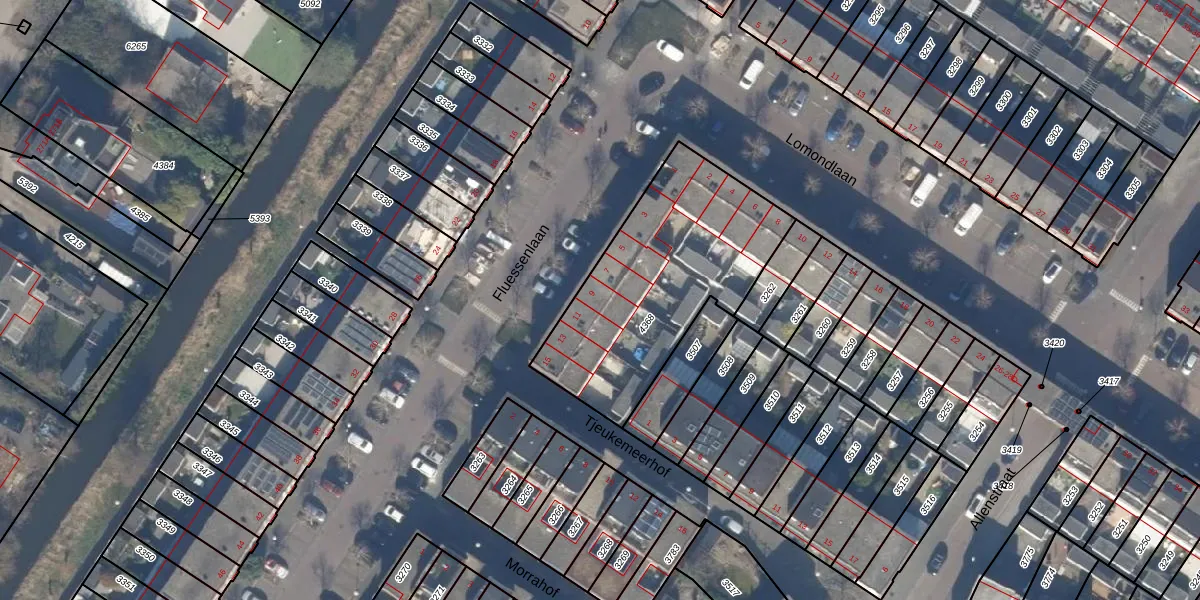 Het perceel waarop Fluessenlaan 9 staat heeft een oppervlakte van 935 m². Dit is een groot perceel. De perceeloppervlakte wordt geregistreerd door het Kadaster. Gedetailleerde informatie over de maten van dit perceel kunt u vinden in het rapport Kadastrale kaart met maatvoering van Fluessenlaan 9.