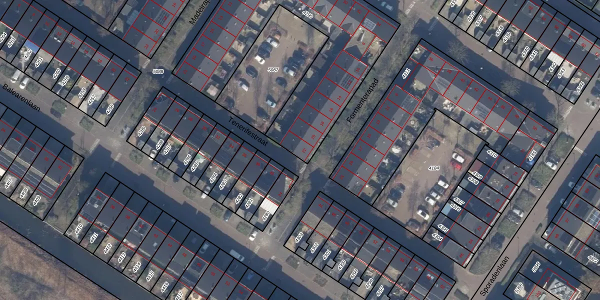 Het perceel waarop Formenterapad 22 staat heeft een oppervlakte van 2260 m². Dit is een zeer groot perceel. De perceeloppervlakte wordt geregistreerd door het Kadaster. Gedetailleerde informatie over de maten van dit perceel kunt u vinden in het rapport Kadastrale kaart met maatvoering van Formenterapad 22.