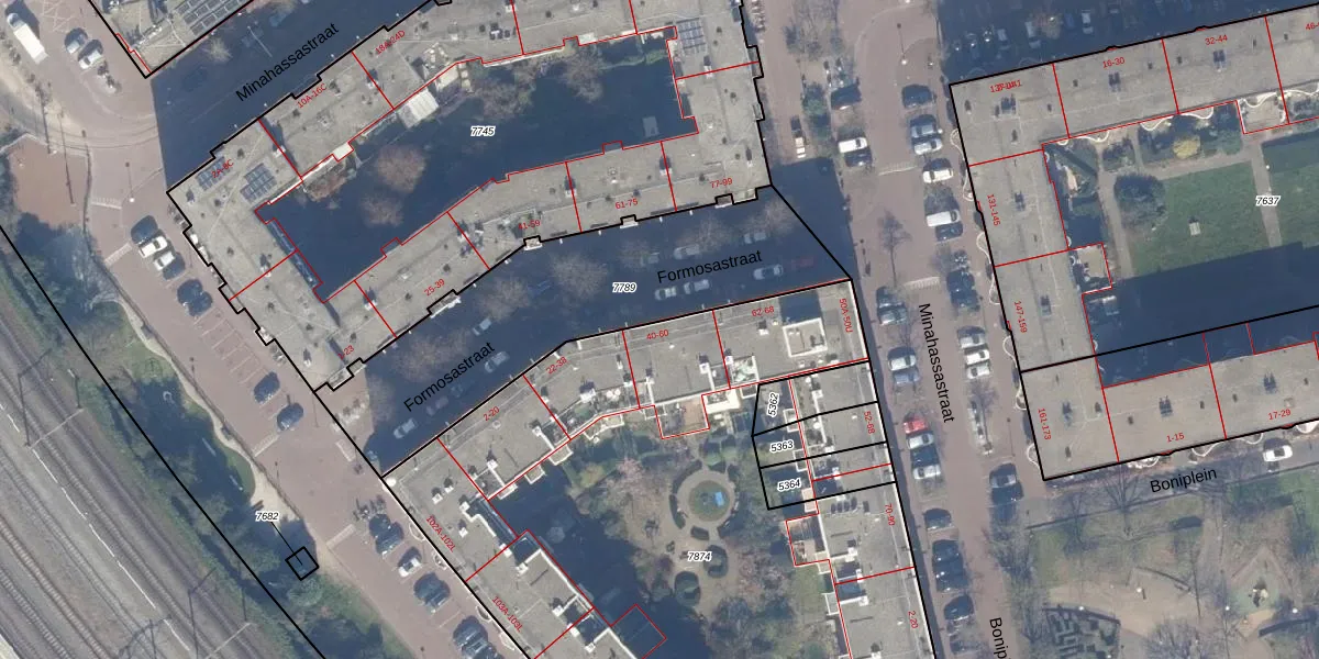 Formosastraat 40 is gelegen op kadastraal perceel ASD19W7874. Deze kadastrale aanduiding is uniek en wordt gebruikt door het Kadaster om eigendomsrechten en andere zakelijke rechten vast te leggen. Het perceel maakt onderdeel uit van de kadastrale gemeente Amsterdam.