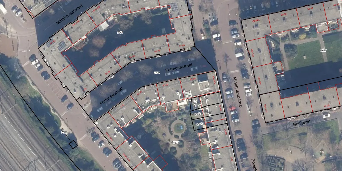 Formosastraat 42 is gelegen op kadastraal perceel ASD19W7874. Deze kadastrale aanduiding is uniek en wordt gebruikt door het Kadaster om eigendomsrechten en andere zakelijke rechten vast te leggen. Het perceel maakt onderdeel uit van de kadastrale gemeente Amsterdam.
