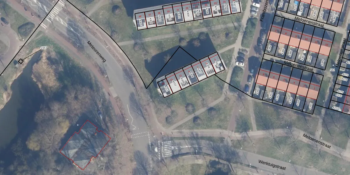 Het perceel waarop Frambozenstraat 13 staat heeft een oppervlakte van 60 m². Dit is een klein perceel. De perceeloppervlakte wordt geregistreerd door het Kadaster. Gedetailleerde informatie over de maten van dit perceel kunt u vinden in het rapport Kadastrale kaart met maatvoering van Frambozenstraat 13.