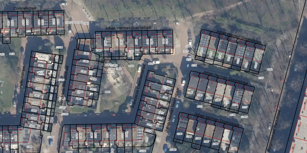 Gebruik de zoekbalk of klik op een perceel voor informatie over de adressen binnen dit perceel.