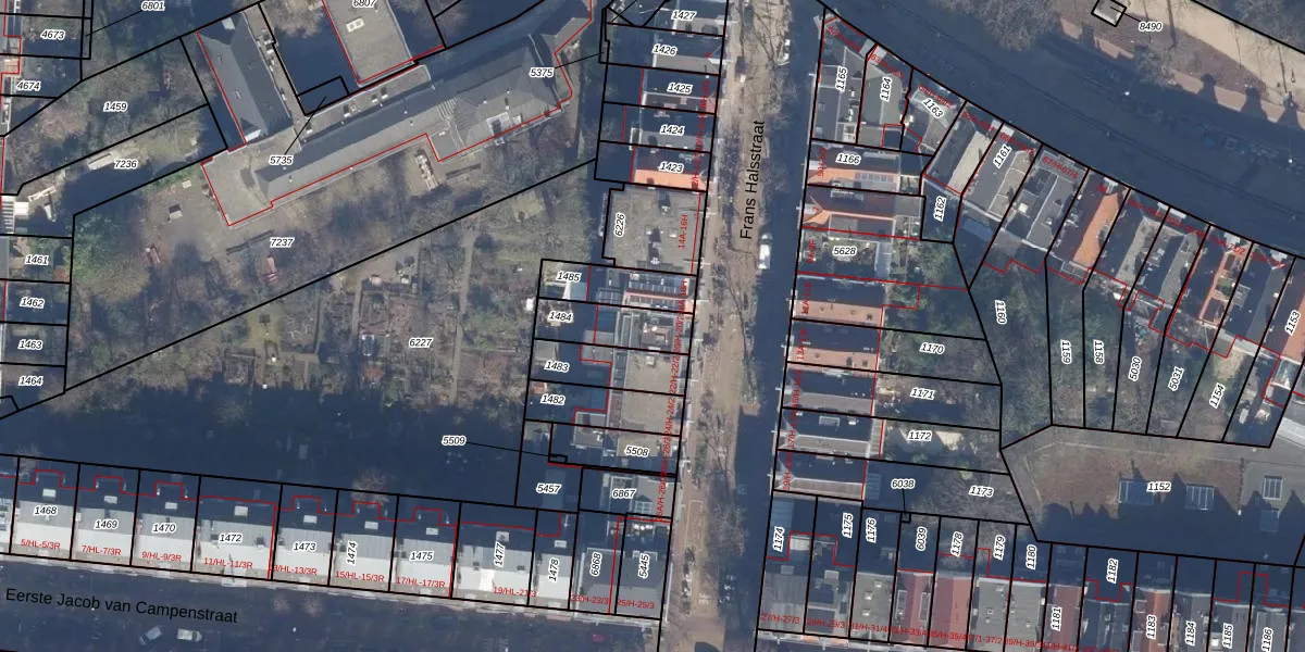 Frans Halsstraat 20-H is gelegen op kadastraal perceel ASD14R1484. Deze kadastrale aanduiding is uniek en wordt gebruikt door het Kadaster om eigendomsrechten en andere zakelijke rechten vast te leggen. Het perceel maakt onderdeel uit van de kadastrale gemeente Amsterdam.