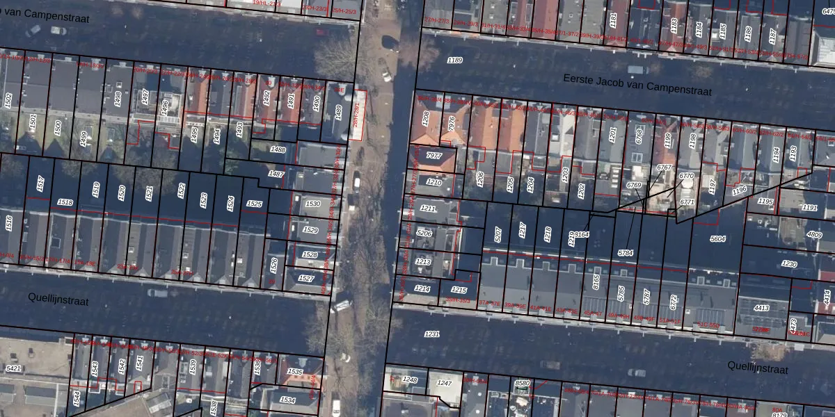 Het perceel waarop het adres ligt is ASD14-R-1211. De afkorting 'ASD14' staat voor kadastrale gemeente Amsterdam. Het perceel is 129 m² groot. Dat is kleiner dan de gemiddelde perceeloppervlakte in Amsterdam, dat op 354,38 m² ligt. De grootste perceeloppervlakte in de kadastrale gemeente is 9,9 ha. De kleinste oppervlakte bedraagt 0 m². Er zijn 6 adressen aanwezig op het perceel. In de Basisregistratie Kadaster (BRK) werden de grenzen van het perceel geregistreerd op 09-10-2006.