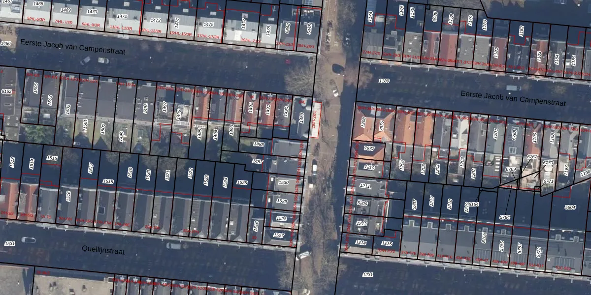 Het perceel waarop het adres ligt is ASD14-R-1488. De afkorting 'ASD14' staat voor kadastrale gemeente Amsterdam. Het perceel is 135 m² groot. Dat is kleiner dan de gemiddelde perceeloppervlakte in Amsterdam, dat op 354,38 m² ligt. De grootste perceeloppervlakte in de kadastrale gemeente is 9,9 ha. De kleinste oppervlakte bedraagt 0 m². Er zijn 5 adressen aanwezig op het perceel. De huidige grenzen van het perceel zijn digitaal in de Basisregistratie Kadaster (BRK) geregistreerd op 06-10-2006.