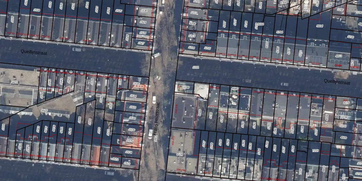 Het perceel waarop Frans Halsstraat 37-C staat heeft een oppervlakte van 69 m². Dit is een klein perceel. De perceeloppervlakte wordt geregistreerd door het Kadaster. Gedetailleerde informatie over de maten van dit perceel kunt u vinden in het rapport Kadastrale kaart met maatvoering van Frans Halsstraat 37-C.