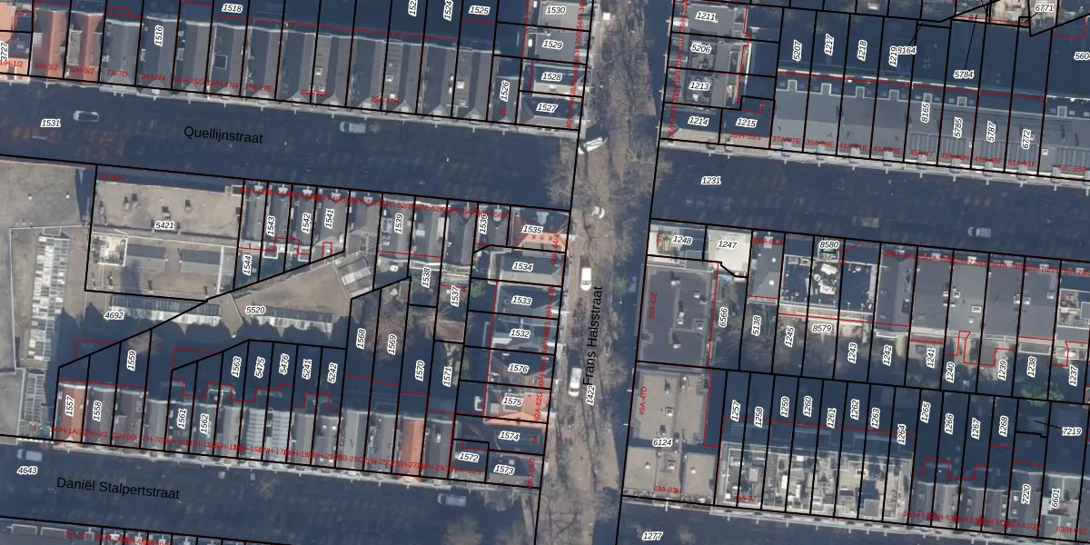 Het adres ligt op het perceel ASD14-R-1534, dat zich in de kadastrale gemeente Amsterdam bevindt. Het perceel is 107 m² groot. Dat is kleiner dan de gemiddelde perceeloppervlakte in Amsterdam, dat op 354,38 m² ligt. De grootste perceeloppervlakte in de kadastrale gemeente is 9,9 ha. De kleinste oppervlakte bedraagt 0 m². Op het perceel zijn 4 adressen aanwezig. In de Basisregistratie Kadaster (BRK) werden de grenzen van het perceel geregistreerd op 06-10-2006.