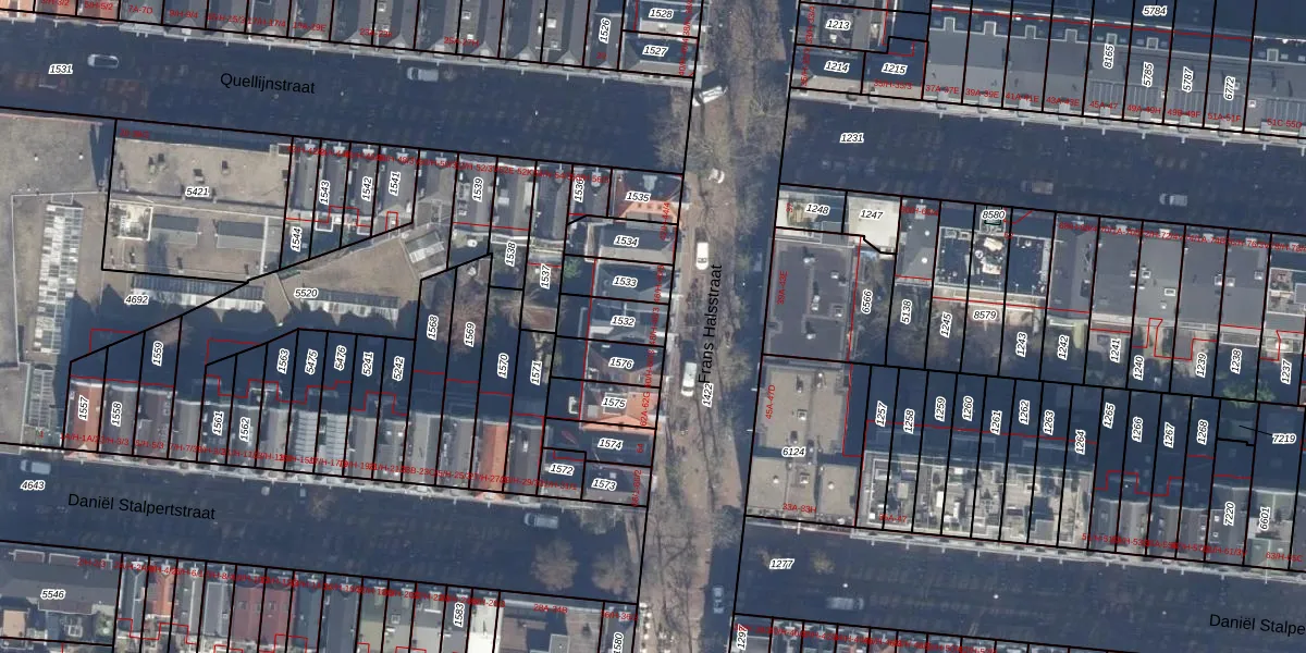 Het adres is gelegen op perceel 1532 in de sectie R en de kadastrale gemeente Amsterdam. De kadastrale aanduiding is aldus ASD14-R-1532. Het perceel is 106 m² groot. Dat is kleiner dan de gemiddelde perceeloppervlakte in Amsterdam, dat op 354,38 m² ligt. Het grootste perceel in de kadastrale gemeente is 9,9 ha. Het kleinste perceel heeft een oppervlakte van 0 m². Er zijn 4 adressen aanwezig op het perceel. De laatste wijziging in het de Basisregistratie Kadaster (BRK) was op 06-10-2006.